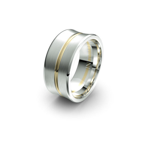 Concave and smooth, the unusual design of this band will suit a fashionable yet practical man. The polished inner ring is offset by the brushed finish outer. Available in seven colour variations.