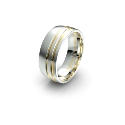 Classic and timeless this is a sophisticated two-tone band with a brushed finished mid-section and finely polished inlays. For the distinguished gentleman. Available in seven colour variations.